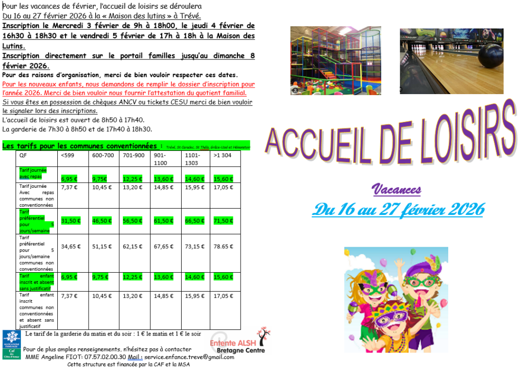 Pour tout renseignements, contacter Angeline FIOT au 07.57.02.00.30 ou au 02.96.67.79.76 ou par mail: service.enfance.treve@gmail.com