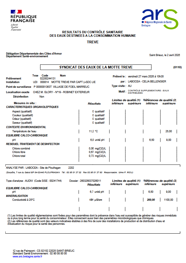 RÉSULTATS ANALYSE EAU FOEIL MARREUC 27 MARS
