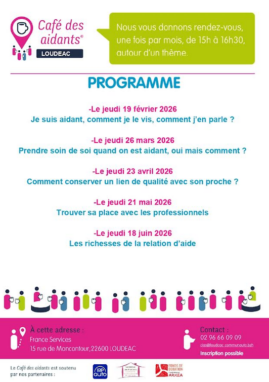 Dans le cadre d’un partenariat avec l’Association Française des Aidants, le CIAS de Loudéac Communauté organise chaque mois un Café des Aidants à destination des proches aidants du territoire.
