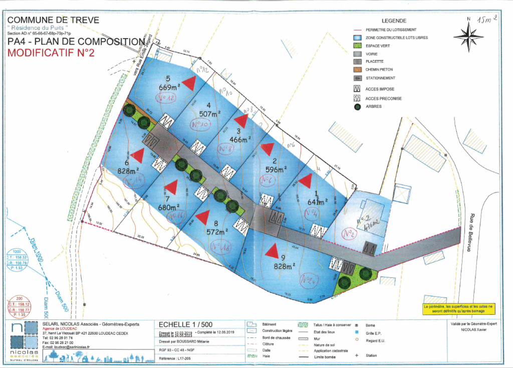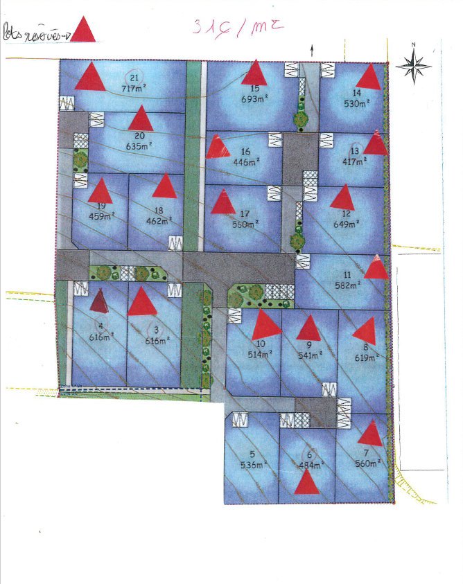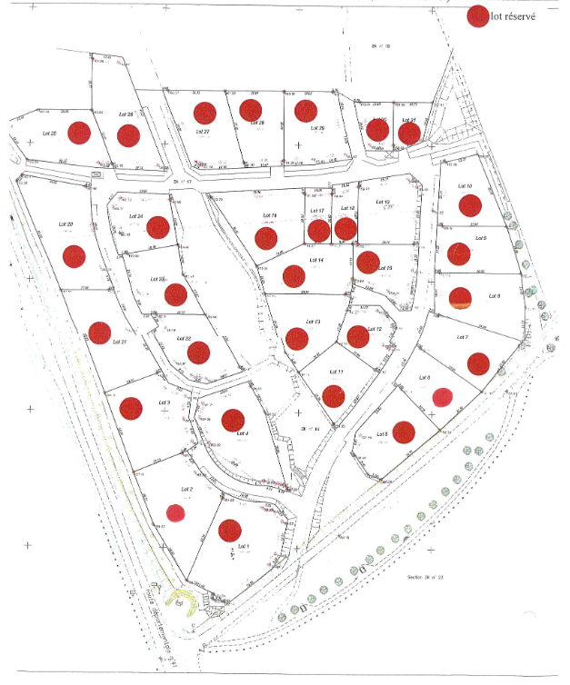 lot 22-23-24-26-30, entre 426m2 et 498 m2 pour une construction et lot 28, 507m2 viabilisé pour deux constructions: 35€/M2