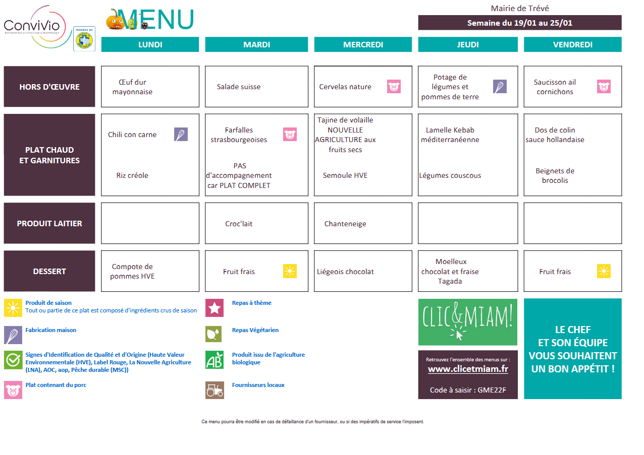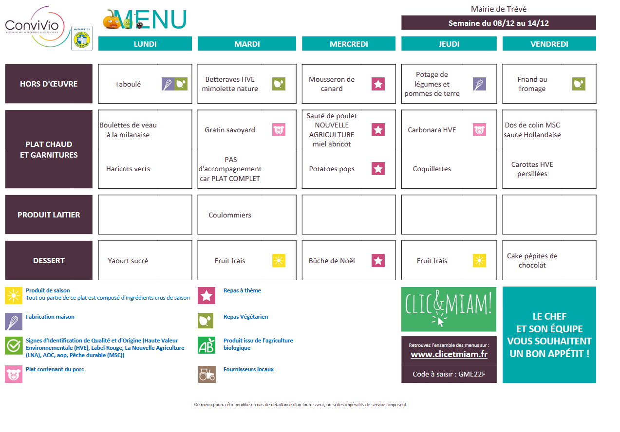 Menu du mois de novembre et décembre 2025